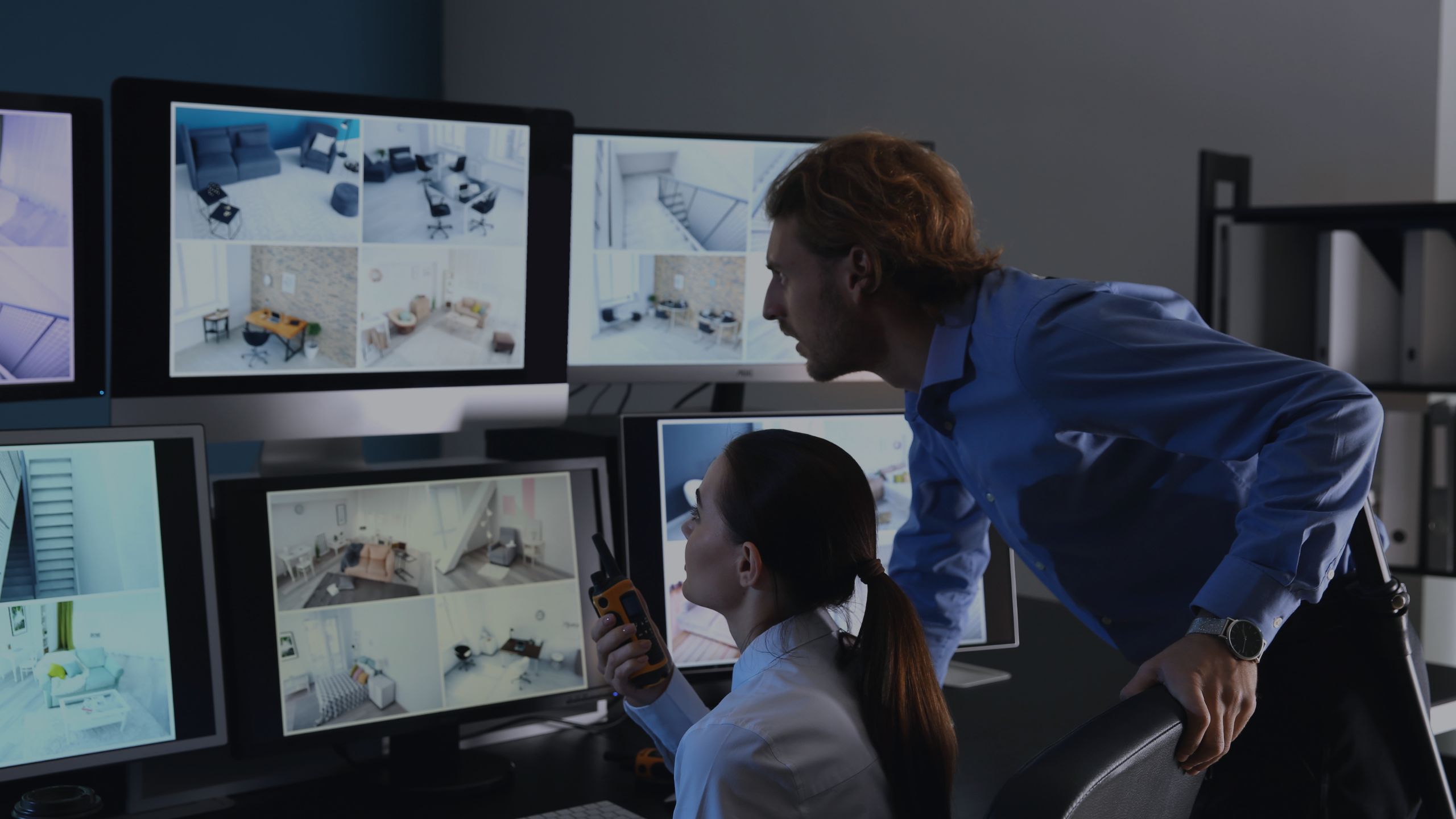 Integrated security camera systems with live monitoring and real-time response protocols.